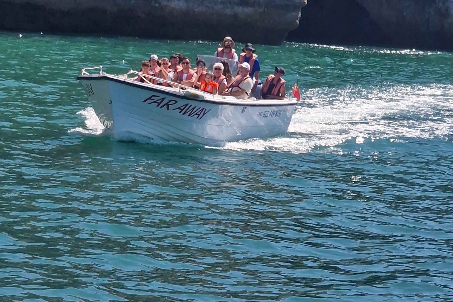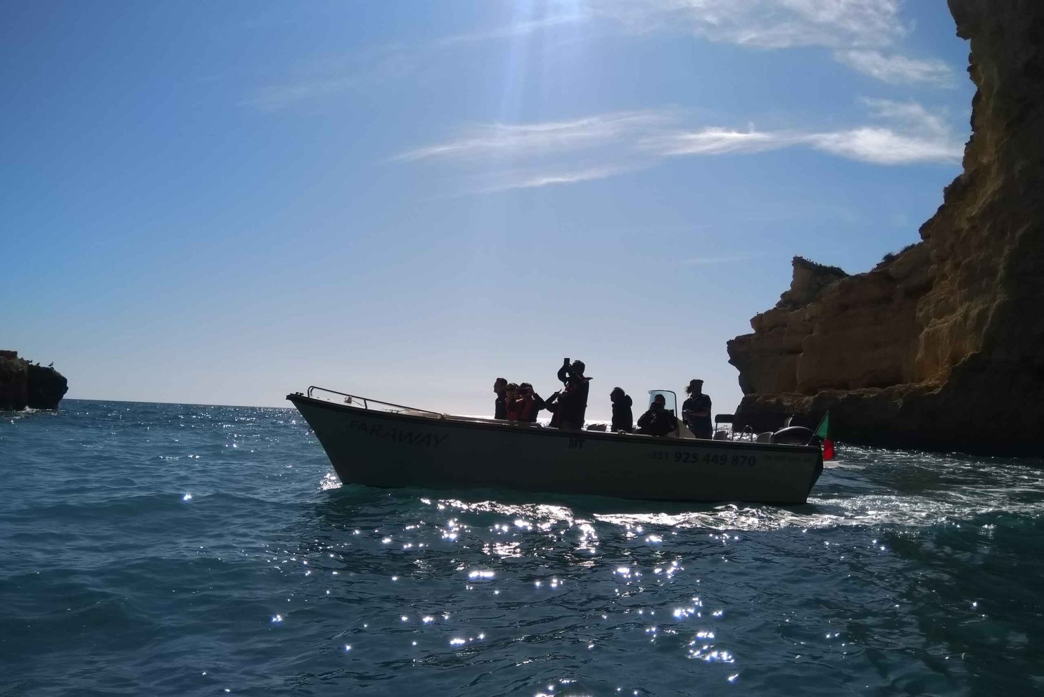 Oplev og udforsk Algarvekysten med dens maleriske klipper, og opdag de smukke grotters indre med vores båd 'Faraway'.