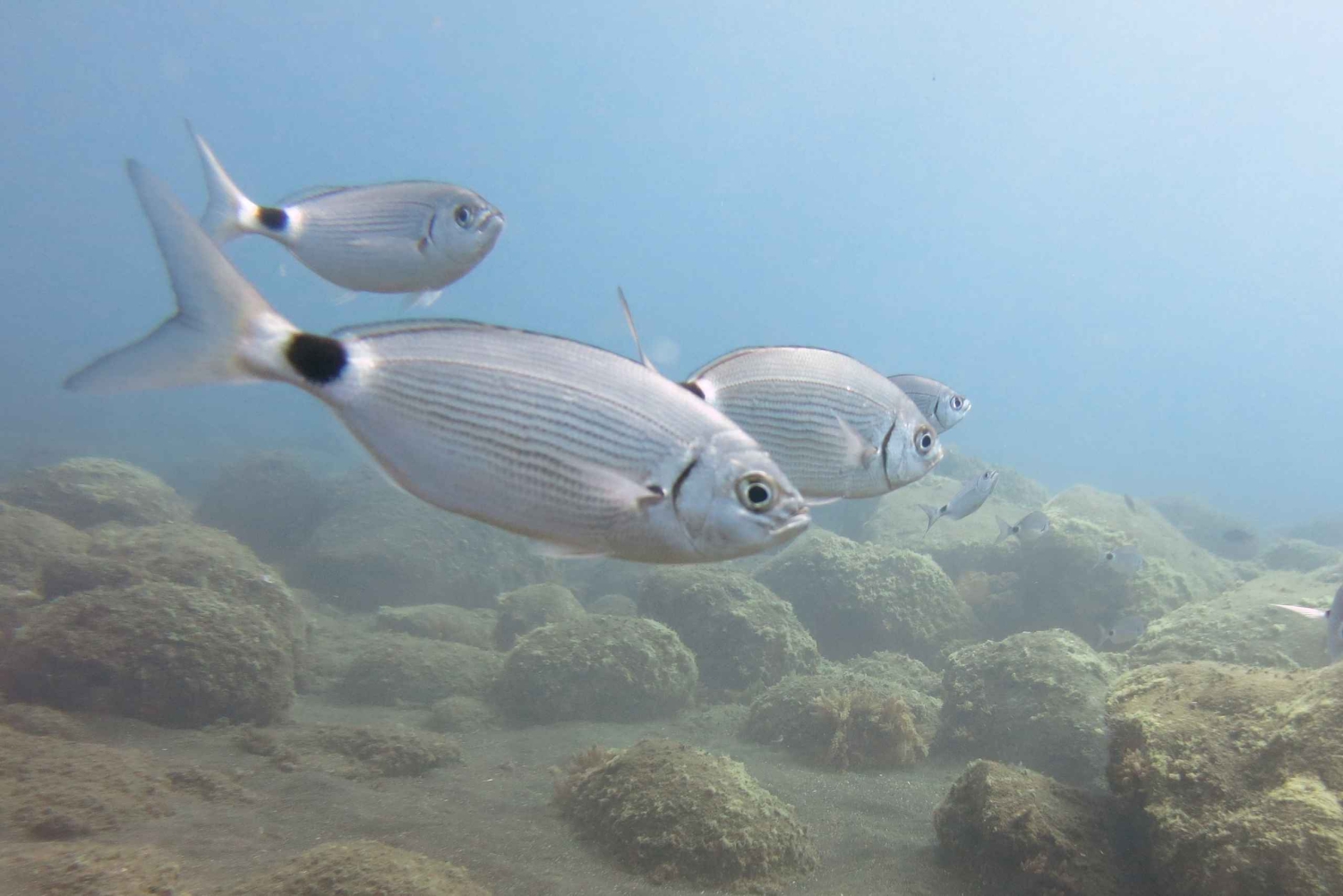 Tämä seikkailu sisältää oppitunnin snorklaukseen sekä perehdytyksen ja varmistaa, että voit luottaa siihen, että voit tutustua omaan tahtiisi! 2 vaihtoehtoa on saatavilla! - Itseohjautuva snorklaus rannalta (House-Reefillä). - Opastettu veneretki snorklaamalla suojellussa merensuojelualueessa. Tutustu Madeiran kauneuteen snorklaamalla Marine Eco Parkissa. Ihaile kauniita kallioita vedestä käsin ja ui kirkkaiden kalojen ja muun merenelävän kanssa. Sukelluskeskuksessa annamme sinulle turvallisuuskoulutuksen + lyhyen snorklauksen esittelytunnin ja laitamme varusteet päälle, jotta voit nauttia toiminnasta. Ihaile tämän portugalilaisen saaren henkeäsalpaavaa kauneutta, joka on yksi parhaista paikoista snorklaukseen. Pulahda lämpimiin, kristallinkirkkaisiin vesiin ja nauti upeista näkymistä samalla kun tarkastelet meren elämää. Näe papukaijakaloja, rantakaloja, brasseja, puskurikaloja ja trumpettikaloja, jos olet onnekas.Includes